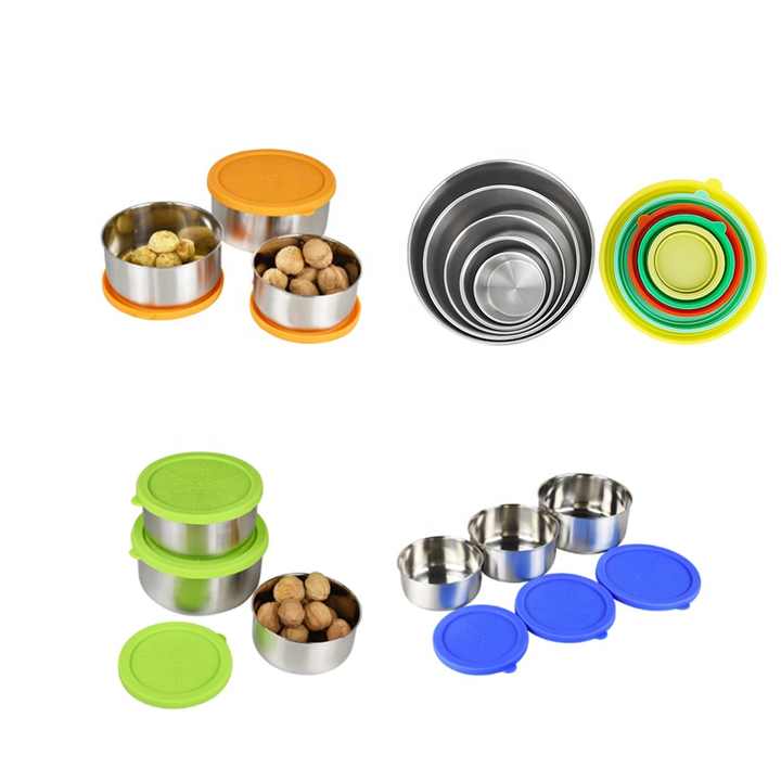 LIHONG Amazon Top Sale Tableware Stainless Steel Round Silicone Food Storage Container for Kids Snacks Lunch Box