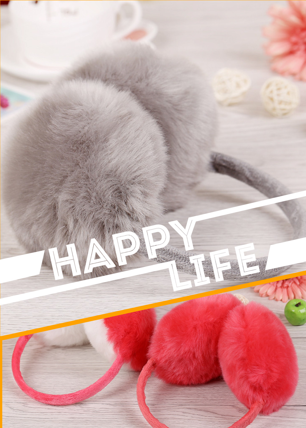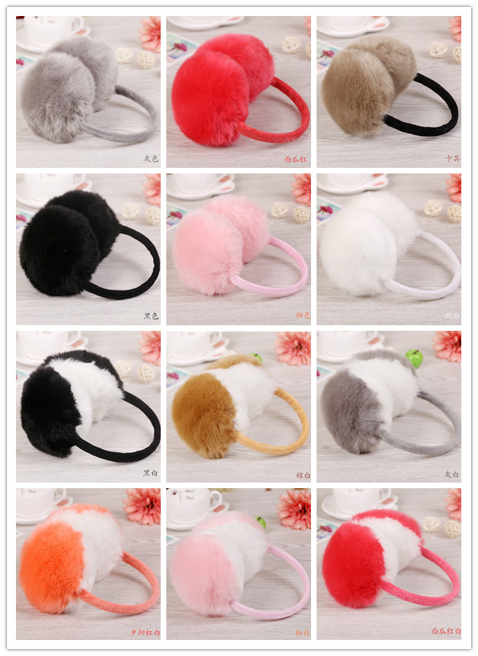 Product Description Solid color imitation rabbit fur red pink brown girl winter warmers plush ear muff