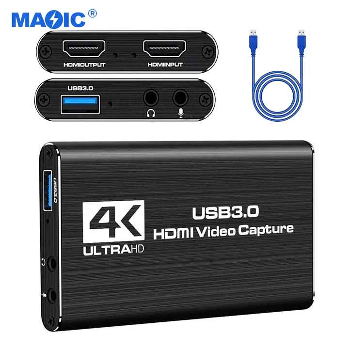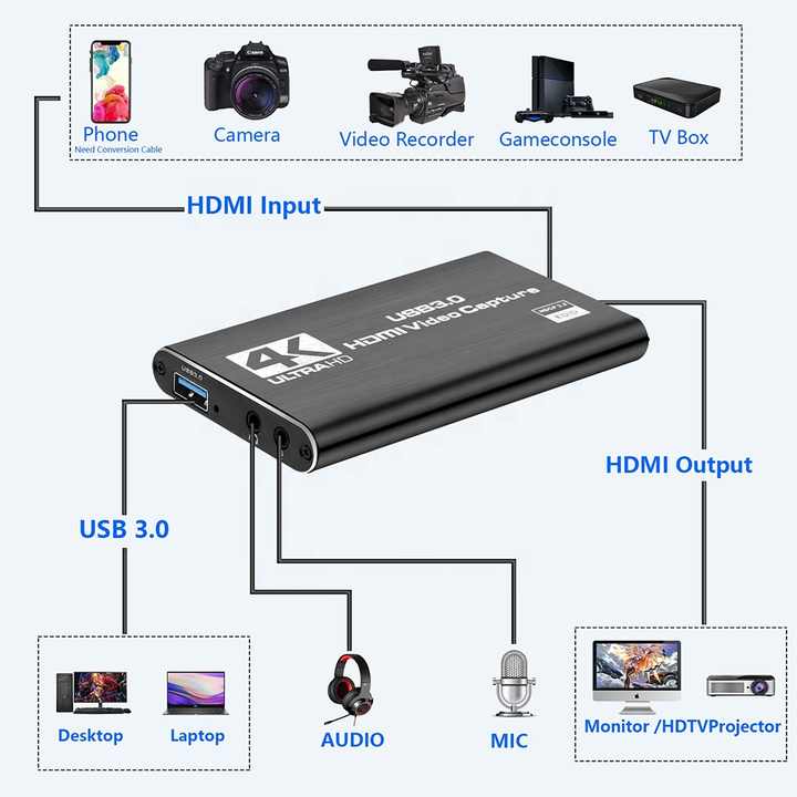 Video Capture Equipment 4k 30hz HDMI Video Capture Card HDMI USB 3.0 Capture Card 4k for Gaming Streaming Video Conference