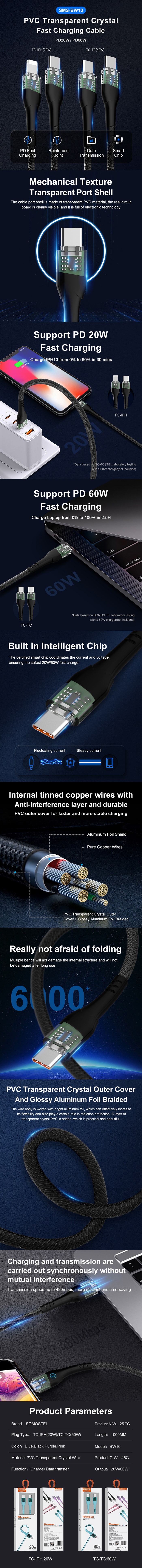SOMOSTEL cables & commonly used accessories wholesale usbc cable pd for iphone apple fast charging cable phone data